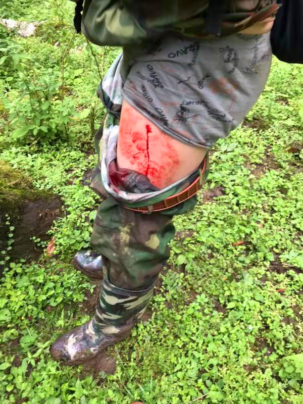 四是生活難——由于地處無人區(qū),加之場地泥濘,路途遙遠,所有鉆探機組人員只能搭帳篷,因地處林區(qū),不能生明火,陰雨連綿,機組人員的衣物就沒有干過。機組人員不但要克服身體的疲勞,還要克服潮濕、泥濘的環(huán)境,而這一住就4個多月過去了。在無人區(qū)工作,旱螞蟥更是繞不開的,在地調(diào)、放點,收孔,隨時會被“親密接觸”,被叮咬的傷口鮮血直流,項目上幾乎所有人都遭了這個罪。