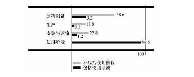 從圖中可以看出在加氣磚使用階段二氧化碳的排放量遠(yuǎn)高于其它階段。因此我們將重點(diǎn)放在如何解決使用過(guò)程中排放量過(guò)高的問(wèn)題。