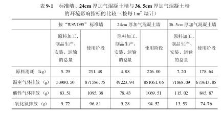 如上圖所示,加氣磚砌筑的墻體厚度與二氧化碳的排放量息息相關(guān),或者說(shuō)墻體的厚度與排放量成反比,加氣磚墻面厚度越高,反而使用中越環(huán)保。雖然36.5厘米加氣磚墻在生產(chǎn)中原材料使用要大于標(biāo)準(zhǔn)強(qiáng)和24厘米墻體,但其在使用階段幾個(gè)主要指標(biāo)上要優(yōu)于后兩者。例如原理消耗一欄中的使用階段,36.5厘米厚加氣磚數(shù)值為178.64千克,,24厘米厚加氣磚為236千克,標(biāo)準(zhǔn)強(qiáng)為231.45千克。三者差距明顯。